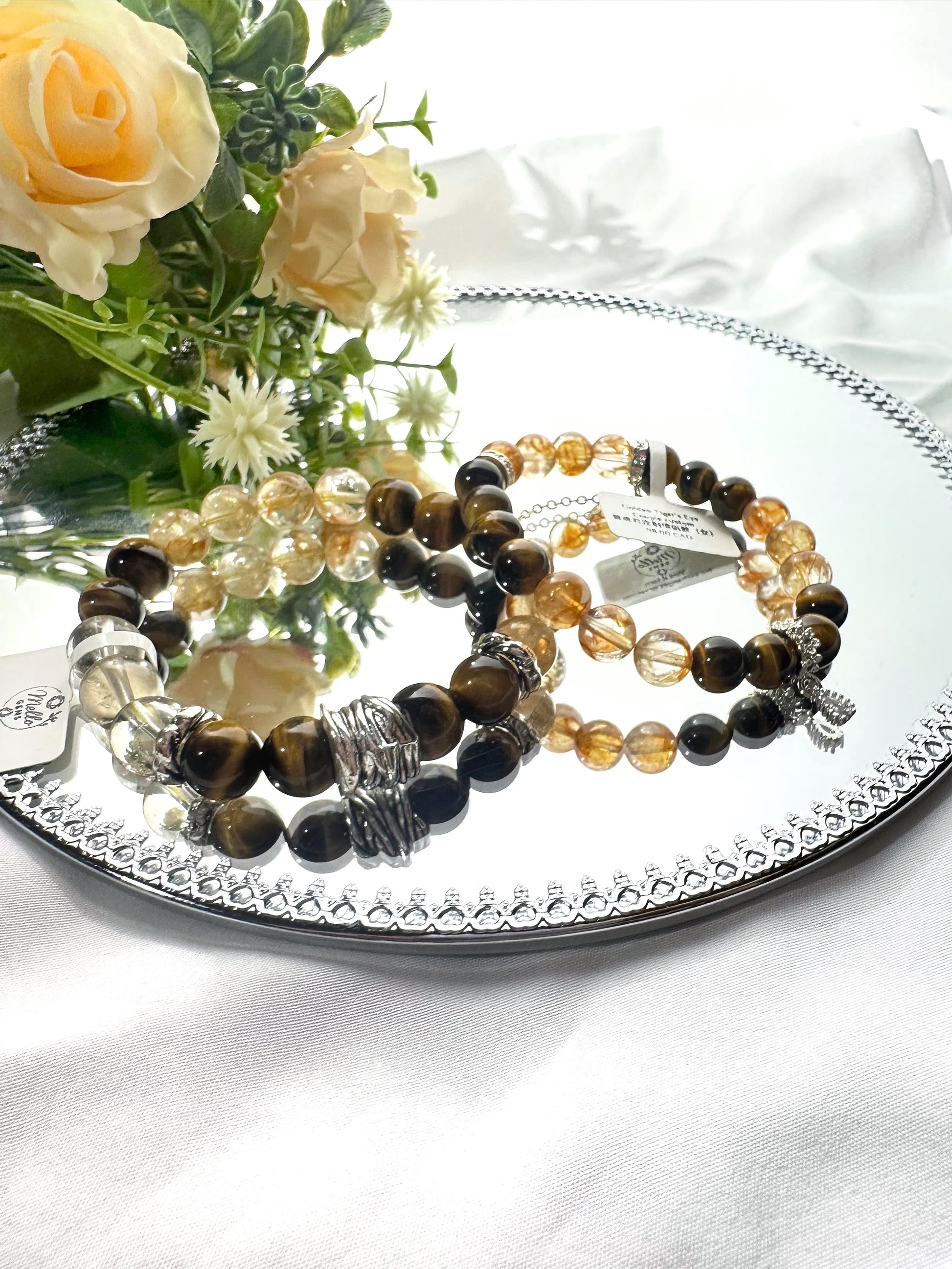 This premium-grade crystal bracelet set is thoughtfully designed to inspire confidence, attract prosperity, and support emotional clarity. Featuring a harmonious combination of Tiger Eye, Hematoid Quartz, and high-grade Yellow Citrine, each bracelet embodies strength, balance, and positive energy.